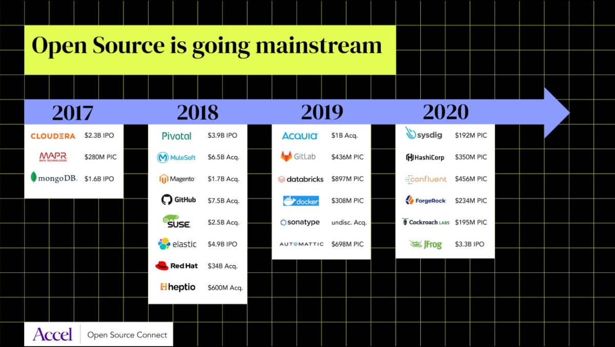 지난 2020년 9월 "Open Source Connect" 온라인 세미나를 통해 Accel 에서 발표한 자료인데, 오픈소스 업계에 잘나가는 오픈소스 100개를 소개하고 있어서 공유해봅니다.
