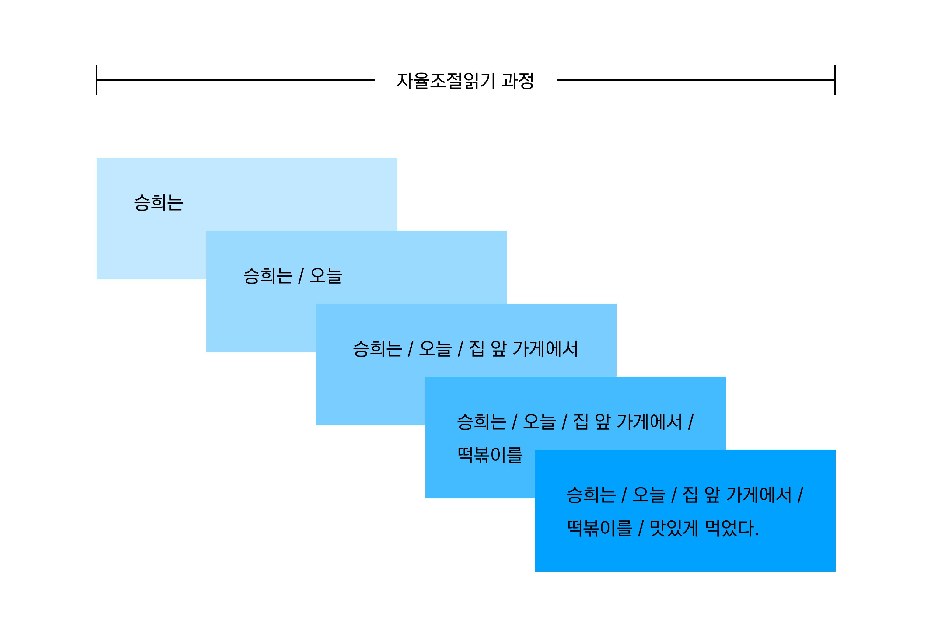 마찬가지로 어순이 자유로운 언어인 한국어에서도 테마-레마 원리를 사용하는 것이 효과가 있을까요? 테마-레마 원리가 한국어 화자에게도 효과가 있는지 검증하기 위해 '자율조절읽기(self-paced reading)'라고 불리는 실험이 수행된 적이 있는데요. 자율조절읽기란 문장의 단어(또는 구)를 하나씩 보여주고, 특정 키를 누르면 다음 단어가 나와서 계속 읽을 수 있는 방식입니다. 이를 통해 한 단어 또는 구를 읽는 데 걸리는 시간을 측정할 수 있습니다.