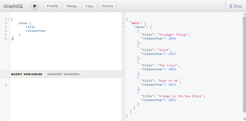 - 애플리케이션을 실행하고 http://localhost:8080/graphiql 로 접속한다. (철자 주의 : 중간에 i 포함)