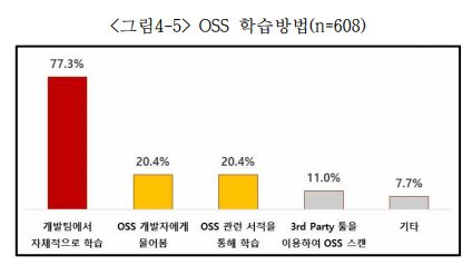 - 개발팀에서 자체적으로 학습하는 비율이 77.3%로 가장 높게 나타남