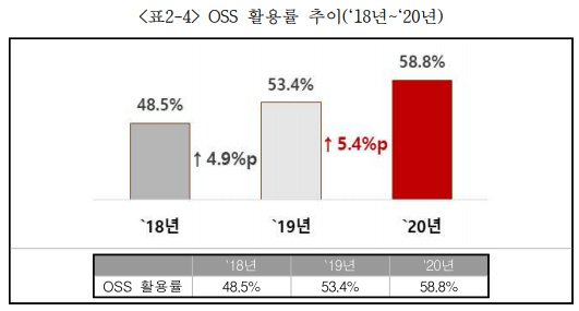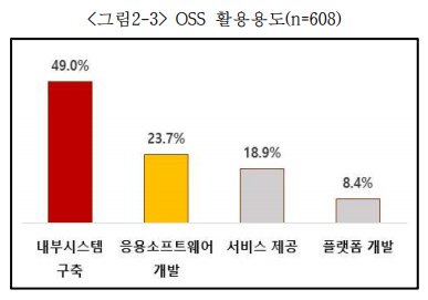 - OSS를 내부시스템 구축에 활용하는 비율이 49.0%