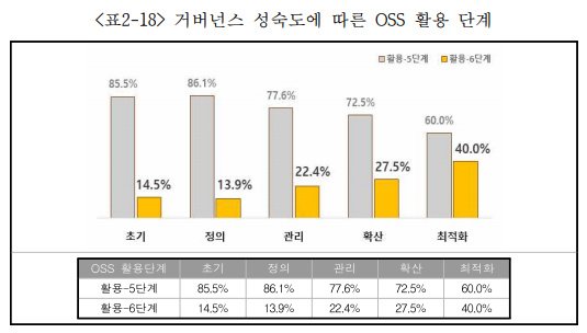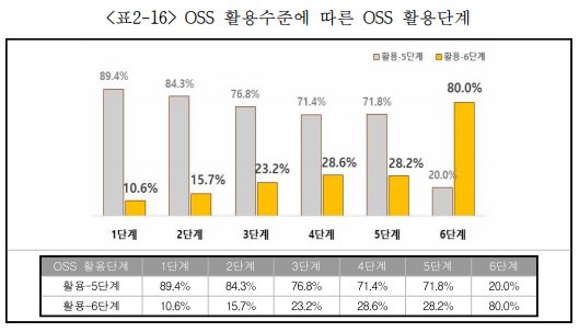 - OSS 활용 기업 중 41%는 활용 단계 2단계 수준에 머무르고 있음