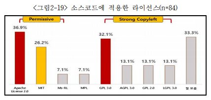- 적용 라이선스 GPL 계열에서는 GPL 3.0이 32.1%로 가장 높은 비율