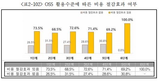 - OSS 활용단계가 높을 수록 비용 절감효과가 있다고 응답하는 비율이 높음