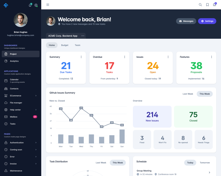 Angular 프레임워크 기반이면서 꽤나 괜찮은 퀄리티를 보여주고 있는 Fuse Angular Template 역시 Angular Material 컴포넌트와 TailwindCSS 조합으로 구성이 되어 있는 것을 확인할 수 있다.
