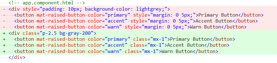 <button mat-raised-button color="primary" style="margin: 0 5px;">Primary Button</button>