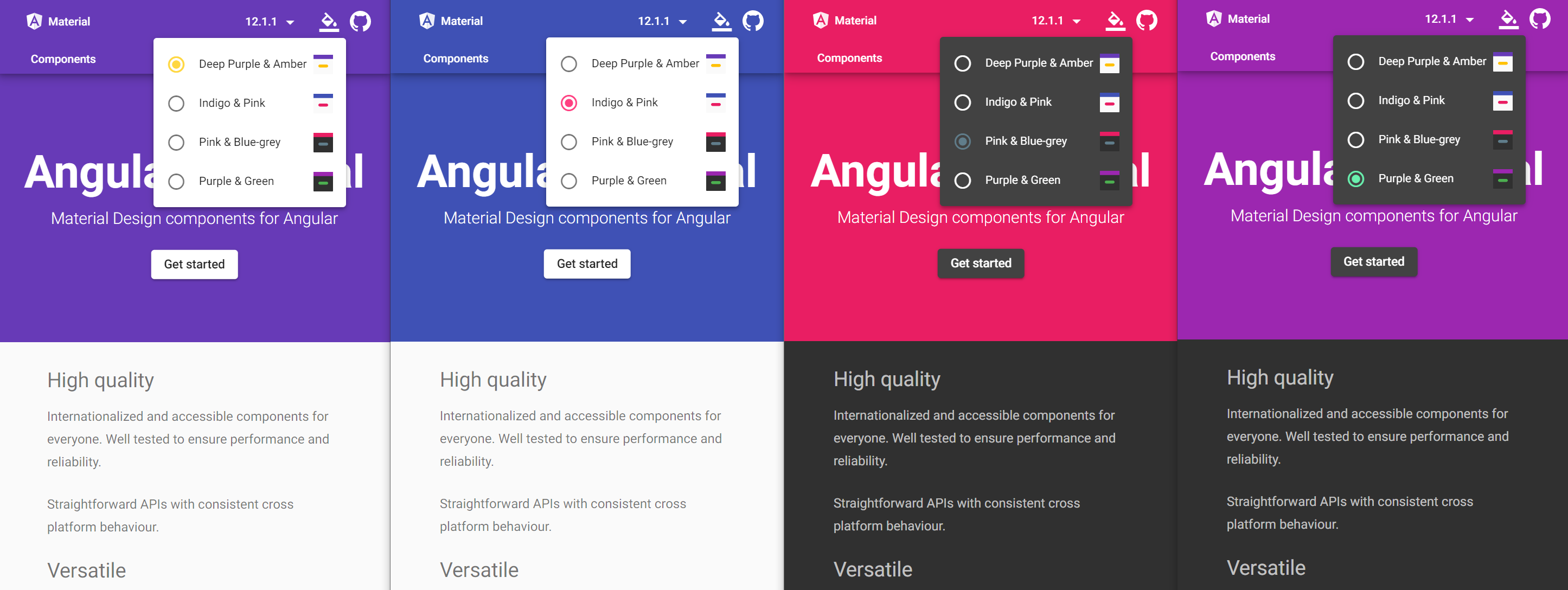 ? Choose a prebuilt theme name, or "custom" for a custom theme: Purple/Green [ Preview: https://material.angular.io?theme=purple-green ]