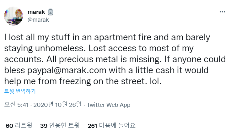 이 글을 올리기전 그는 사제 폭발물을 제조하다가 자신의 아파트가 화재가 나고 체포된 사건도 있었다고 알려져 있는데, 이후 아파트 화재로 모든 물건을 잃어버리고 간신히 노숙자 생활을 하게되었다고 트윗을 통해 상황을 전하기도 했습니다. 지난 몇 년간 오픈소스에 자신이 들인 노력들을 아무런 보상을 받지 못한채 수 많은 기업들이 사용하는 것에 불만을 표출한 이런 상황이 조금은 이해가 됩니다. 그렇다고 하더라도 그가 faker.js와 colors.js에 가한 행동에는 많은 비난이 존재합니다.