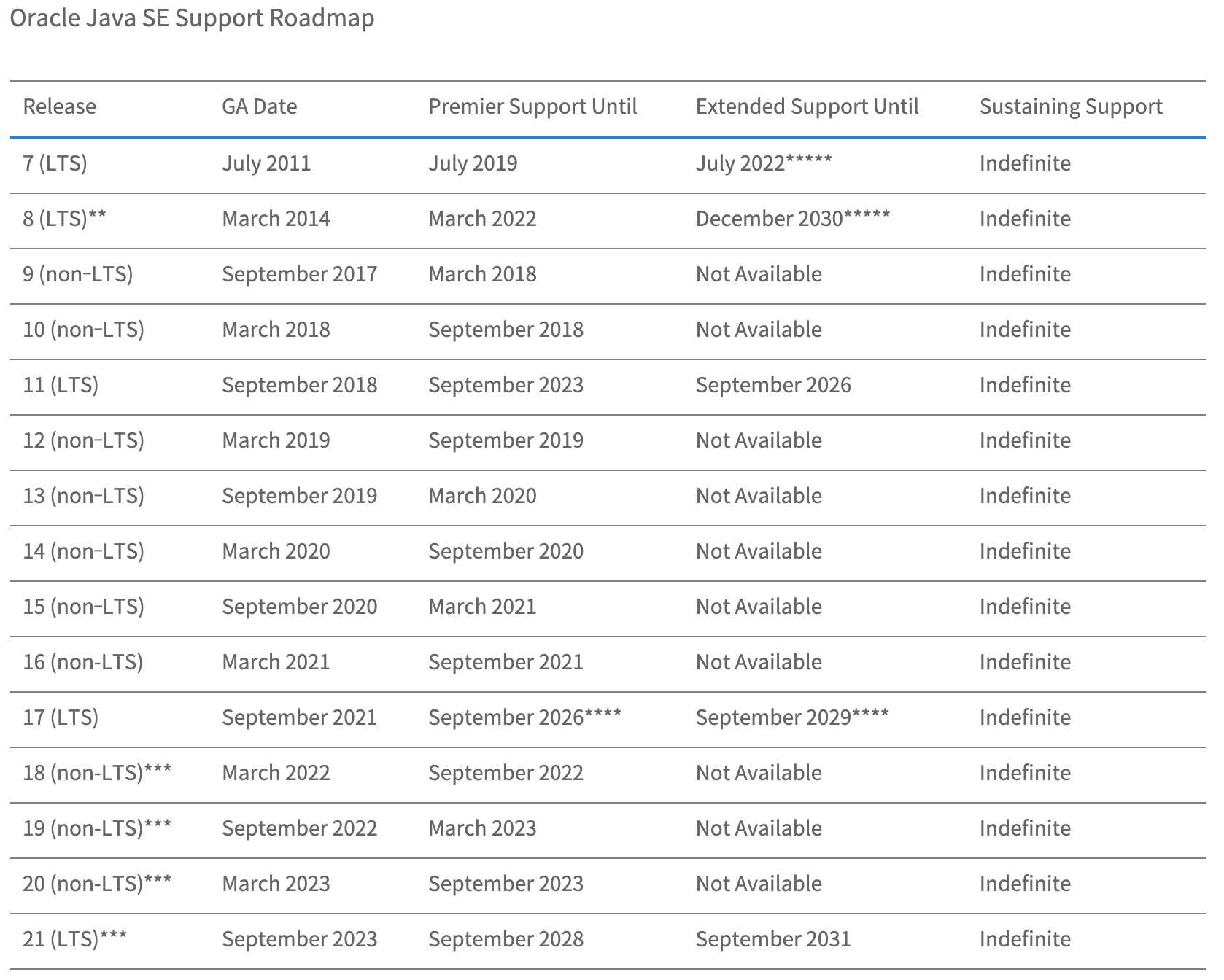 JDK 17 release 이후부터는 2년 주기로 LTS release version을 관리