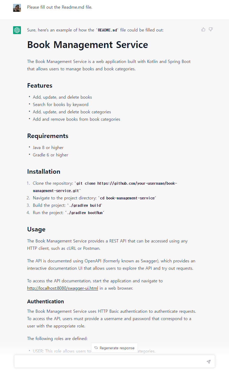 여기까지 ChatGPT 가 생성해준 코드로 제가 만든 프로젝트는 아래 Github 에서 올려두었으니 참고바랍니다.