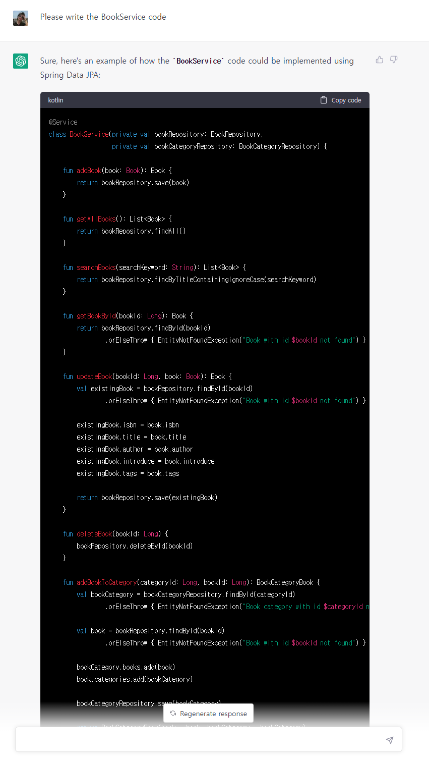 4️⃣ 단계 : ChatGPT로 Repository, Service, Controller 코드 작성하기