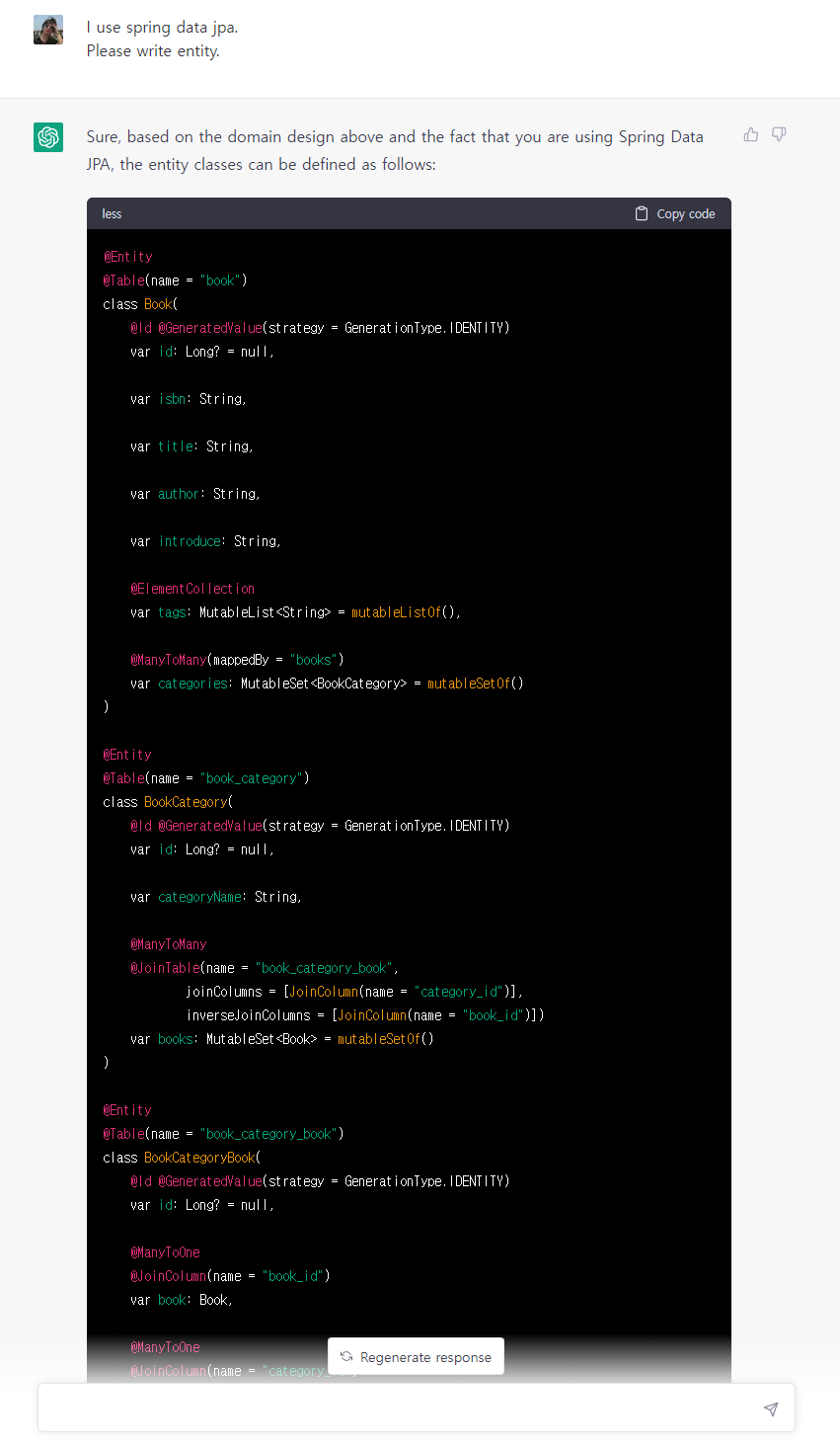 3️⃣ 단계 : ChatGPT로 Entity 코드 작성하기