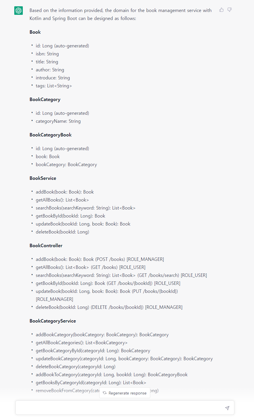 ChatGPT가 내가 알려준 정보를 토대로 도메인 정보를 잘 정리해서 알려줍니다.
