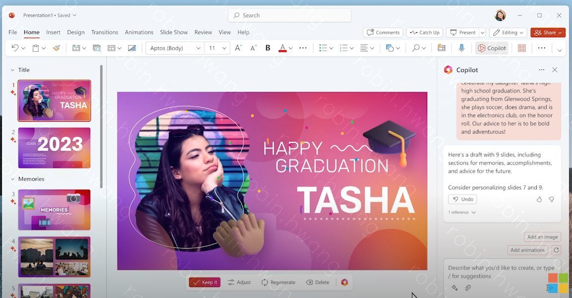 - 기본 컨셉 : LLM + Microsoft Graph + Microsfot 365 Apps- Teams - 회의 중간에 들어왔을 때, 기존 대화 내용들을 요약해 줌- Outlook (10분 40초) - 메일 작성할 때, 코파일럿을 소환하여 초안 작성에 도움을 받음- Presentation (11분 30초)ㄴ 코파일럿 버튼을 누르고 작성하고자 하는 ppt 내용을 입력ㄴ 내 OneDrive에서 사진을 검색하여 작업 요청 가능ㄴ ppt 전체적인 분위기도 입력하면 ppt가 자동 생성.ㄴ 애니메이션 까지 적용된 ppt가 생성됨.ㄴ 생성된 각 페이지 문구도 다시 코파일럿의 도움을 받아 수정 - OneNote (13분 10초) : 간단한 Plan 을 입력하면 코파일럿이 그에 맞는 TODO 리스트를 작성- Word (13분 40초) :ㄴ 3분짜리 연설문 초인을 코파일럿을 통해 자동 생성. 초안 중간에 같은 맥락을 유지한 채 코파일럿을 통해 내용 추가. 이미 작성된 ppt 나 oneNote 등 다른 App 내용을 가져와서 참고할 수도 있음ㄴ 비즈니스 영역에서의 활용 : 제안서 초안을 코파일럿을 통해 작성하고, 작성된 초안의 문체, 사진 자동 추가 요청하면 초안을 기반으로 아래와 같은 문서를 코파일럿이 자동으로 작성해 줌. 작성된 내용을 기반으로 FAQ도 자동으로 작성 - Presentation (두번째, 16분 20초) : 위에서 작성된 문서를 기반으로 제안 PPT를 자동을 생성 - Excel (17분 45초) : 코파일럿에게 데이터 분석 요청하여 트렌드를 제시 받음. 추가 질문에대해 코파일럿이 데이터를 기반으로 자료를 작성해 줌(ex. 특정 기간 동안 매출 성장률 감소 원인 시각화 요청) - Outlook (두번째, 19분 22초) : 코파일럿을 통해 메일을 분석하여 우선순위 높은 메일을 강조 표시해 줌. 긴 이메일 쓰레드를 요약. 받은 메일 내용을 토대로 자동으로 답장 초안 작성