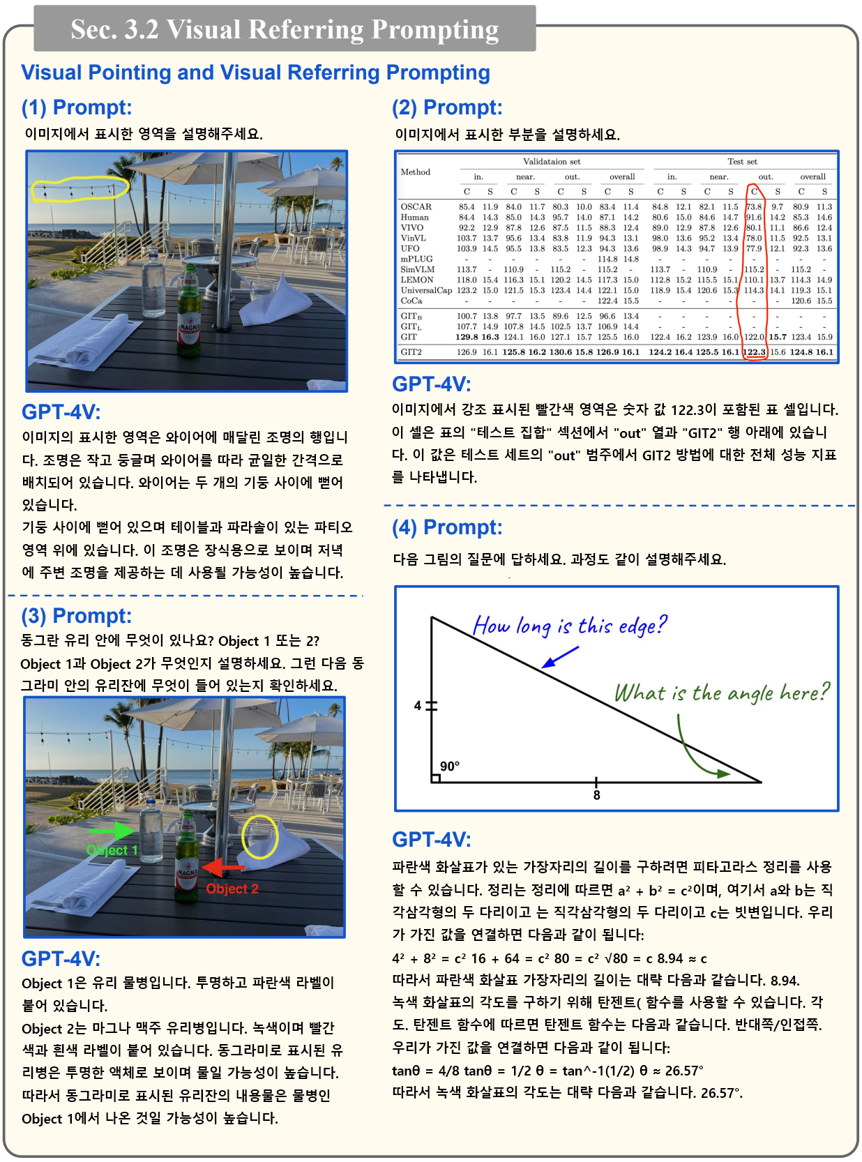 - Visual Pointing과 Visual Referring 방식을 통해서 프롬프트를 줄 수 있습니다.